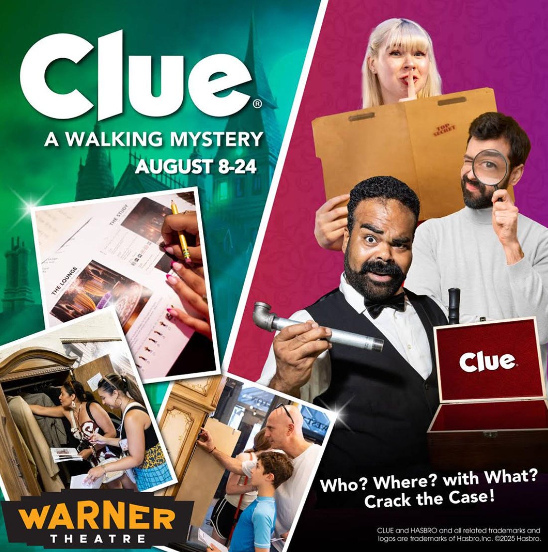 August 9: Clue, A Walking Mystery, Warner Theater